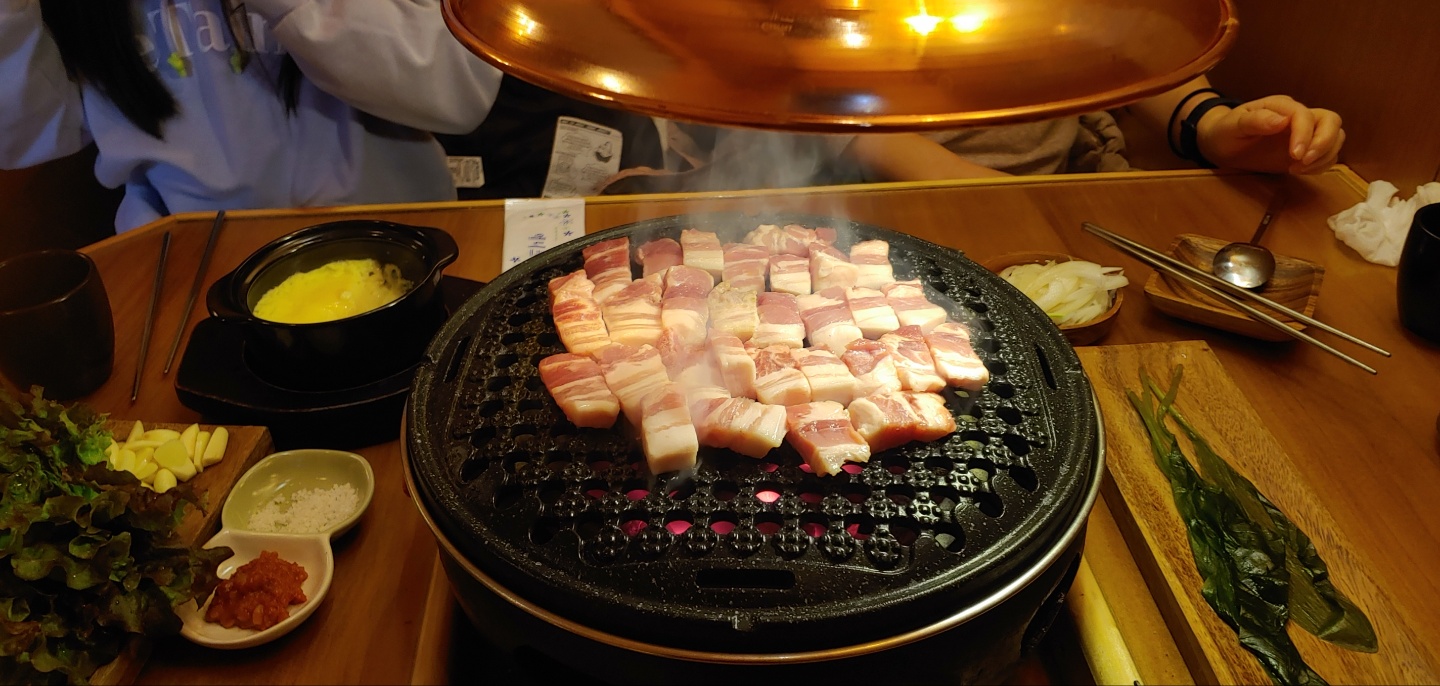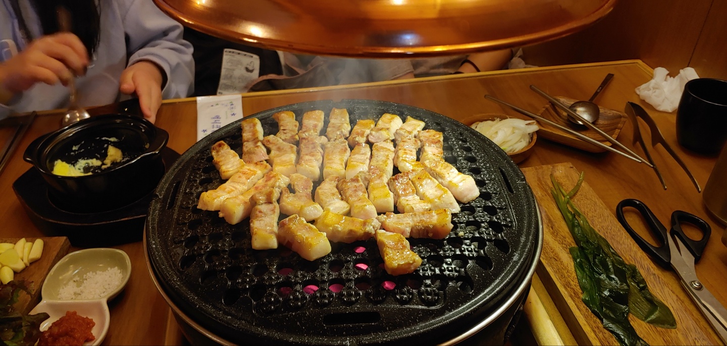 드디어 대망의 삼겹살을 불판에 올렸다.
